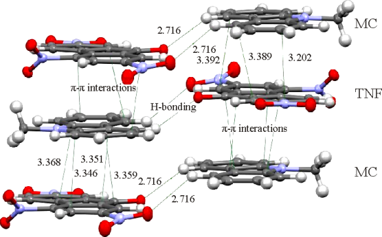 Based on DFT quantum chemical calculations, data on the structures and properties of charge transfer complexes of 9H-fluoren-9-one derivatives with с 9-methyl-9H-carbazole are obtained. Formation energies of the complexes, average distances between donor and acceptor planes, donor-to-acceptor chargeа transfer values are calculated. Crystal and molecular structures of the 2,4,7-trinitro-9H-fluoren-9-one complex with 9-methyl-9H-carbazole (C13H5N3O7·C13H11N) are determined by the single crystal X-ray diffraction analysis. Donor and acceptor molecules form mixed stacks {–D–A–D–A–}∞ in the crystalline complex where the average interplanar distance D⋯A is 3.30 Å.